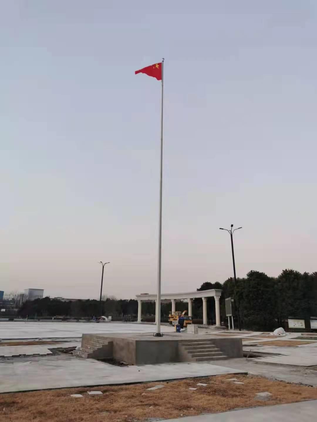阜陽市潁上縣江店孜鎮人民政府文化廣場18米不銹鋼錐形旗桿,此次左尚金屬安徽耀龍為阜陽市潁上縣江店孜鎮人民政府文化廣場生產的旗桿為優質不銹鋼制造,旗桿錐形挺拔高大,是錐形外置式的旗桿,內藏不銹鋼繩,旗桿外無旗繩,免去旗桿與旗繩碰撞產生刮痕,從而可能導致桿體易生銹。